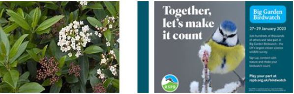 January is also a great time to watch birds as they are more visible in bare trees and tend to come closer to people as wild food becomes scarce. The last weekend of January sees the RSPB's big garden birdwatch, a long running wildlife survey that we can all join in with. Please feel welcome to join me from 9.30 to 11.30 on Saturday 28th January 2023, meeting at the potting shed, as we survey the birds at Highland Court and have a conversation about wildlife. This will be a family friendly activity with no experience necessary. Please bring binoculars if you have them, but don't worry if you don't.
